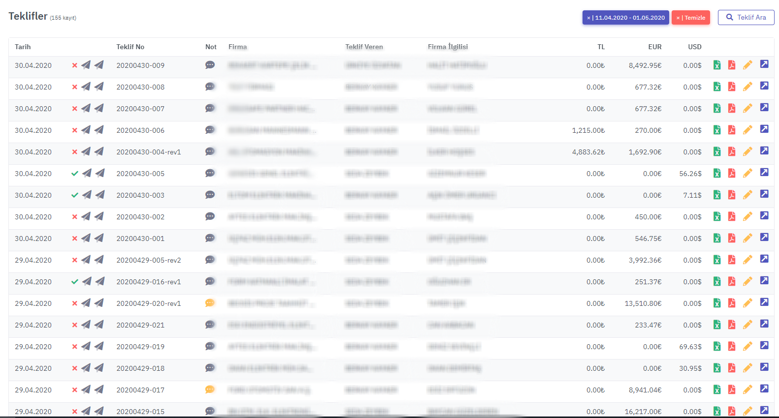 HEMEN İNCELEµCRM, hızlı teklif oluşturma odaklı geliştirilmiştir. Firma ve ürün kayıtlarınızı ister elle girebilir ister muhasebe programınızla entegre ederek, dakikalar içerisinde kapsamlı teklifler oluşturabilirsiniz. Hızlı teklif oluşturmanın yanı sıra µCRM, bu teklifleri sizin yerinize müşterilerinize e-posta ile PDF formatında gönderir. Onaylanan teklifler muhasebe entegrasyonu ile sipariş olarak oluşur ve stoklarınızdan düşer.